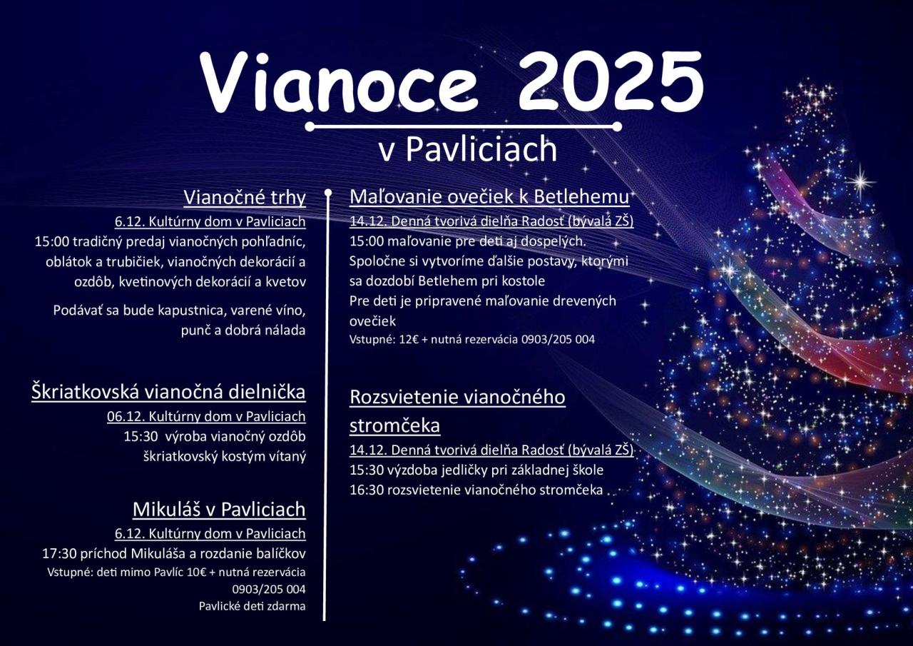 6. decembra od 15:00 hod. sa uskutočnia tradičné Vianočné trhy v Kultúrnom dome. Tento rok so sprievodným programom pre deti.